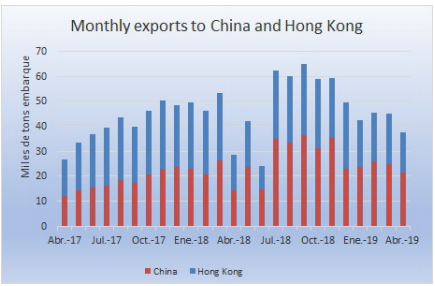 南方共同市場2018/19年的希爾頓配額即將截止,最后一批發(fā)運即將完成,烏拉圭截止到5月24日共完成了97.8%的配額,即6236噸,均價10661美金/噸,同比下跌9.3%。而481配額發(fā)運量同比下跌15.4%,只有10811噸,均價上漲2.4%到9402美金/噸。