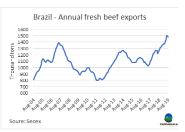 盡管阿根廷經(jīng)濟(jì)狀況微妙且因初選之后一系列情節(jié)變化無常。這標(biāo)志著相比于執(zhí)政黨,反對(duì)黨候選人Alberto Fernández Cristina和Fernández de Kirchner獲得了明顯偏愛。目前為止,肉類貿(mào)易鏈未受明顯影響。阿根廷這段時(shí)期經(jīng)歷的危機(jī)中限制購買美元這一經(jīng)濟(jì)