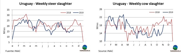 根據(jù)南方共同市場(chǎng)4個(gè)國(guó)家官方數(shù)據(jù)統(tǒng)計(jì),2019年前10個(gè)月南方共同市場(chǎng)4個(gè)國(guó)家牛屠宰量比2018年同時(shí)期減少25萬(wàn)頭。巴西上個(gè)月的數(shù)據(jù)只是暫時(shí)情況,在接下來(lái)幾周一定會(huì)有所增長(zhǎng),但這并不會(huì)扭轉(zhuǎn)牛只屠宰量的減少趨勢(shì)。數(shù)據(jù)表明,1月-10月,南方共同市場(chǎng)牛只屠宰量3518萬(wàn)頭,比2018年前10個(gè)月減少25萬(wàn)頭,肉類(lèi)生產(chǎn)的減少量是6-7萬(wàn)噸。主要是巴西、巴拉圭和烏拉圭屠宰量有減少,部分抵消了阿根廷牛只屠宰量30萬(wàn)頭的增長(zhǎng)。