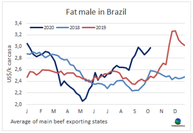 智利進(jìn)口市場(chǎng)表現(xiàn)出上行跡象,一位巴拉圭出口商表示,20切全牛成交價(jià)4900-5100美元/噸,11月和12月的銷售前景樂(lè)觀。