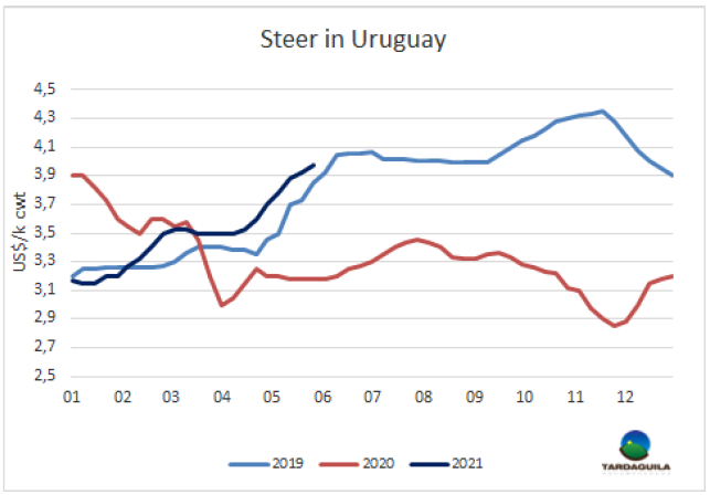 巴拉圭出口商期望智利宣布的重新開放活動(dòng)能夠重新激活進(jìn)口市場(chǎng)。目前進(jìn)口商20部位全牛采購(gòu)價(jià)不超過(guò)5400美元/噸,距出口商對(duì)新合同的報(bào)價(jià)低400美元/噸。