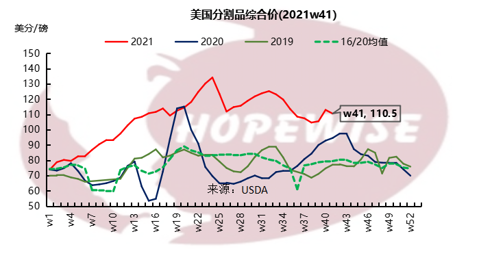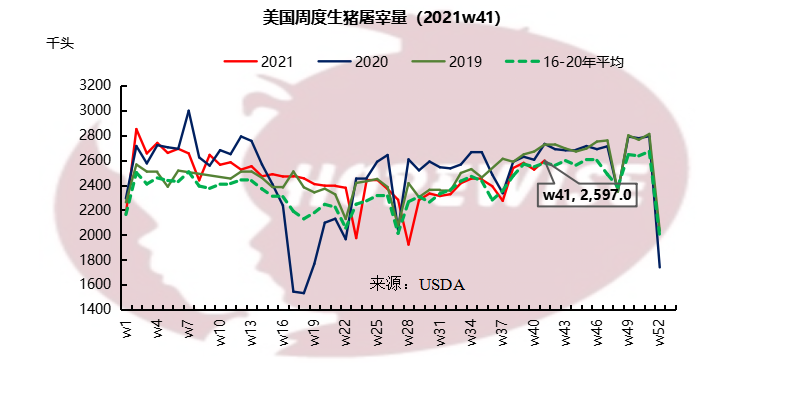 美國9月生豬均價0.83美金/磅,環(huán)比下滑15.45%,同比上漲47%。豬胴體價格1.07美金/磅,環(huán)比下滑10.47%,同比增長26.97%。生豬價格處于季節(jié)性下滑階段。9月最后一周,豬各部位肉的平均批發(fā)價格與6月中旬達到的年度峰值相比下降約20%。雖然生豬產量有增加,仍低于去年同期水平。9月周度生豬屠宰量246.08萬頭,環(huán)比增加2.13%,同比減少3.04%。生豬周度產量23.32萬噸,環(huán)比增加1.96%,同比減少3.36%。