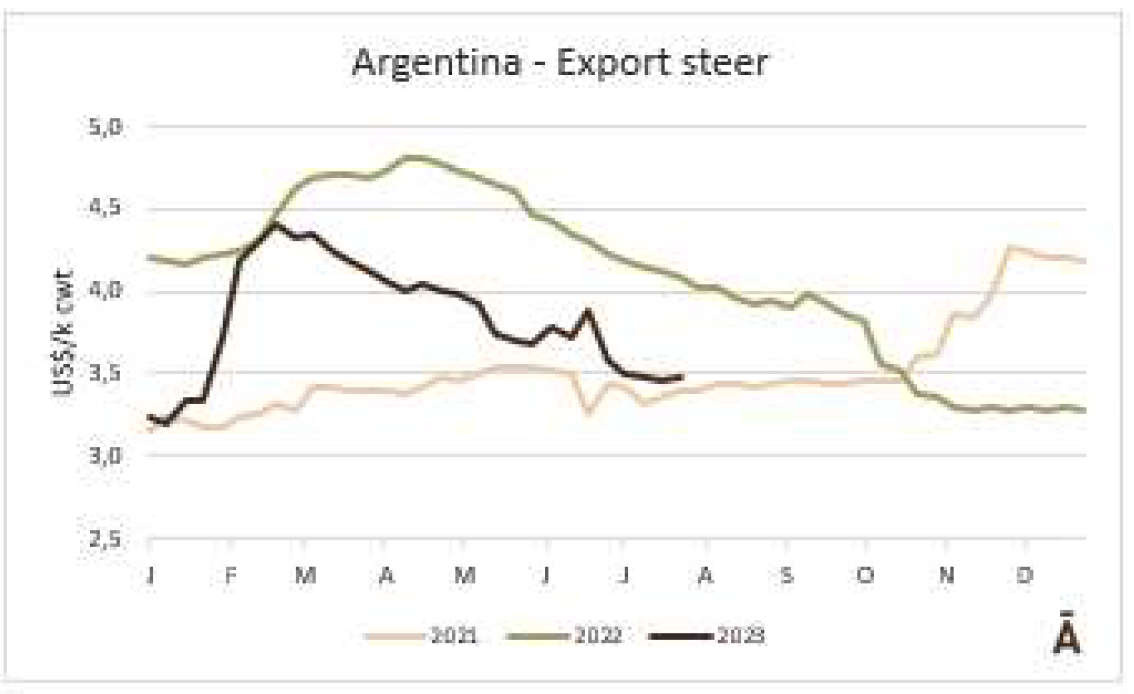 牛肉的平均出口價格在六周內(nèi)下降了10%