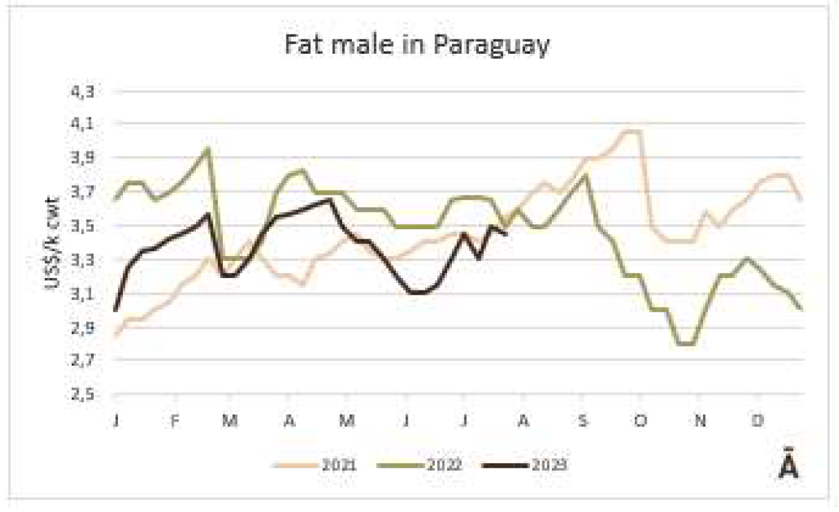 巴拉圭成品牛市場采購價格下降,據(jù)一位消息人士稱,公牛屠宰盡管本周以每公斤酮體3.50美元的價格成交,母肥牛下周以3.15美元的價格成交,但新裝載量的價格降低了約10美分。
