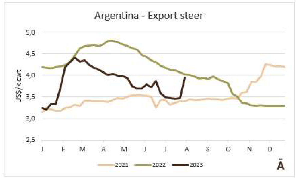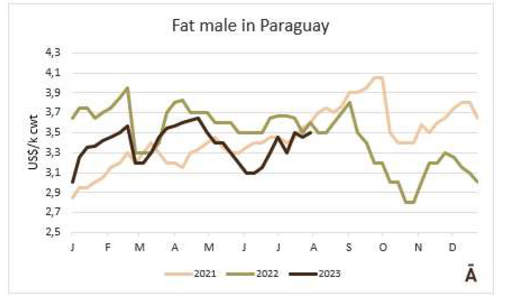 盡管一些工廠從上周開拾堅持以低的價格支付,但巴拉圭的價格基本上保持不變,普通公牛每公斤胴體重量約3.50美元,肥牛約3.10美元。