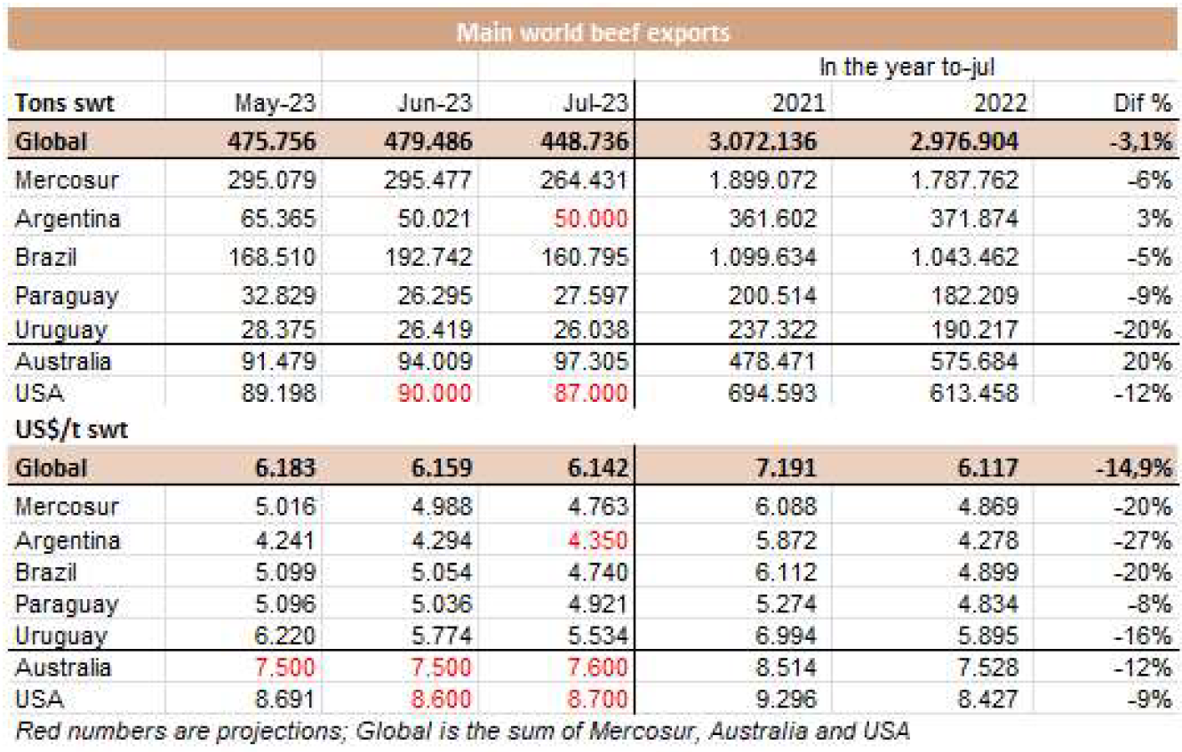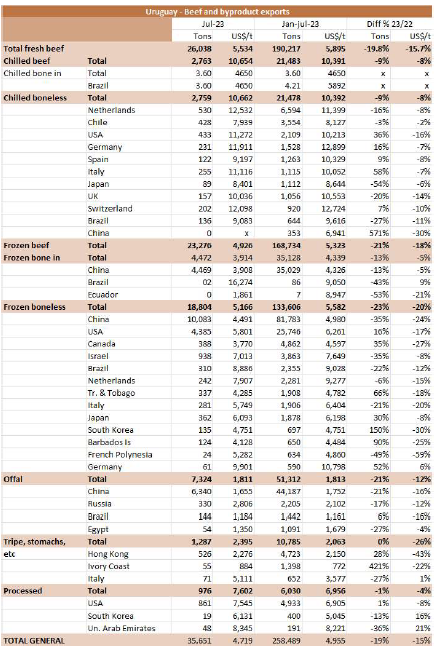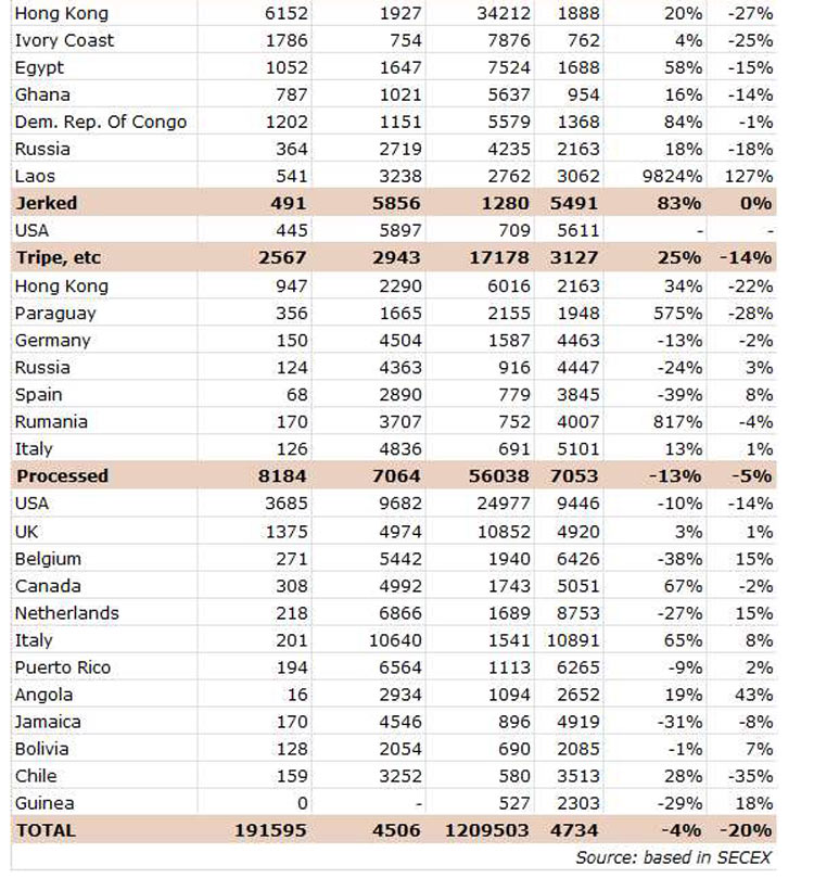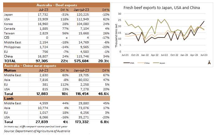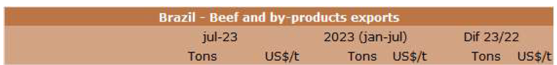 在WBR的最新報告中,公布了截至7月的月度出口表,其中新鮮牛肉的總出口存在錯誤。下面是正確的圖表。