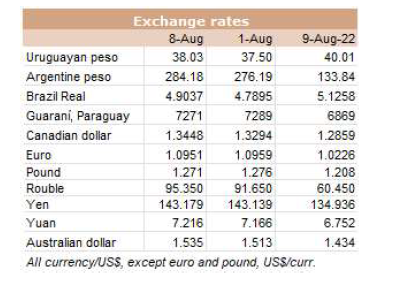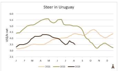 美國進(jìn)口市場無法維持上周的動態(tài),對烏拉圭產(chǎn)品的需求和價格似乎都有點疲軟。根據(jù)一位貿(mào)易商的說法,7天前90CL前部位肉達(dá)到的CFR4550美元/噸很難維持,進(jìn)口商打算每噸少付50至100美元。