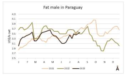巴拉圭公牛屠宰價格為3.55美元,并將此價格定位為該地區(qū)價格自高到低排行第二的國家,但特種牛的價格下跌了10-15美分。