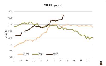 昨天下午,在阿根廷出口暫停15天后,市場(chǎng)陷入癱瘓。就烏拉圭而言,知情人士報(bào)道,交易價(jià)格為FOB13000,比上周多了400美元。就連一家歐洲進(jìn)口商本周的正常業(yè)務(wù)價(jià)格也高達(dá)13500美元。就巴拉圭而言,交易價(jià)格也比較高,上周末,交易價(jià)格達(dá)到FOB 11600美元。