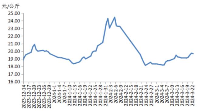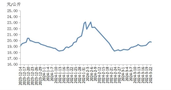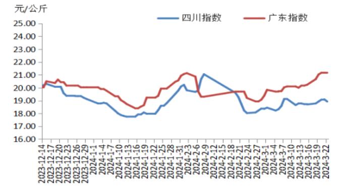 本周,四川豬肉周均價為每公斤18.96元,環(huán)比上漲1.3%,同比上漲2.2%,同比漲幅擴大2.0個百分點。川內散養(yǎng)戶出欄積極性不高,適重豬源減少;家庭消費逐漸恢復,豬肉經銷商拿貨積極性提升,需求短時小幅增加。供減需增提振四川地區(qū)豬肉周均價環(huán)比小幅上漲。