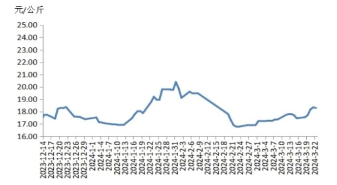 據農業(yè)農村部信息中心和山東卓創(chuàng)資訊股份有限公司聯(lián)合監(jiān)測,2024年第12周(即2024年3月18日-3月22日,以下簡稱本周),16?。ㄖ陛犑校┦萑庑桶讞l豬肉出廠價格總指數的周平均值為每公斤19.55元,環(huán)比上漲2.0%,同比上漲1.3%,同比由跌轉漲。