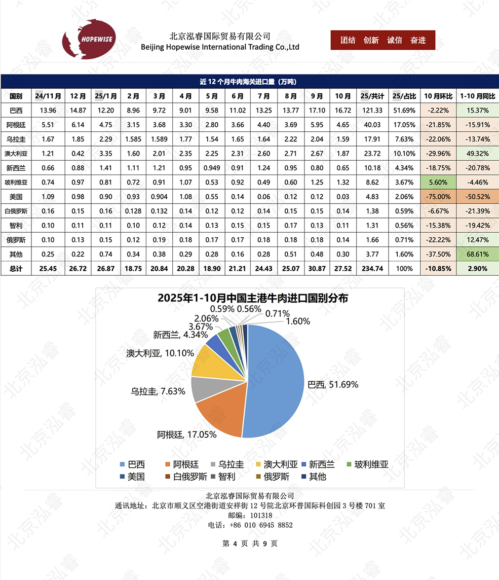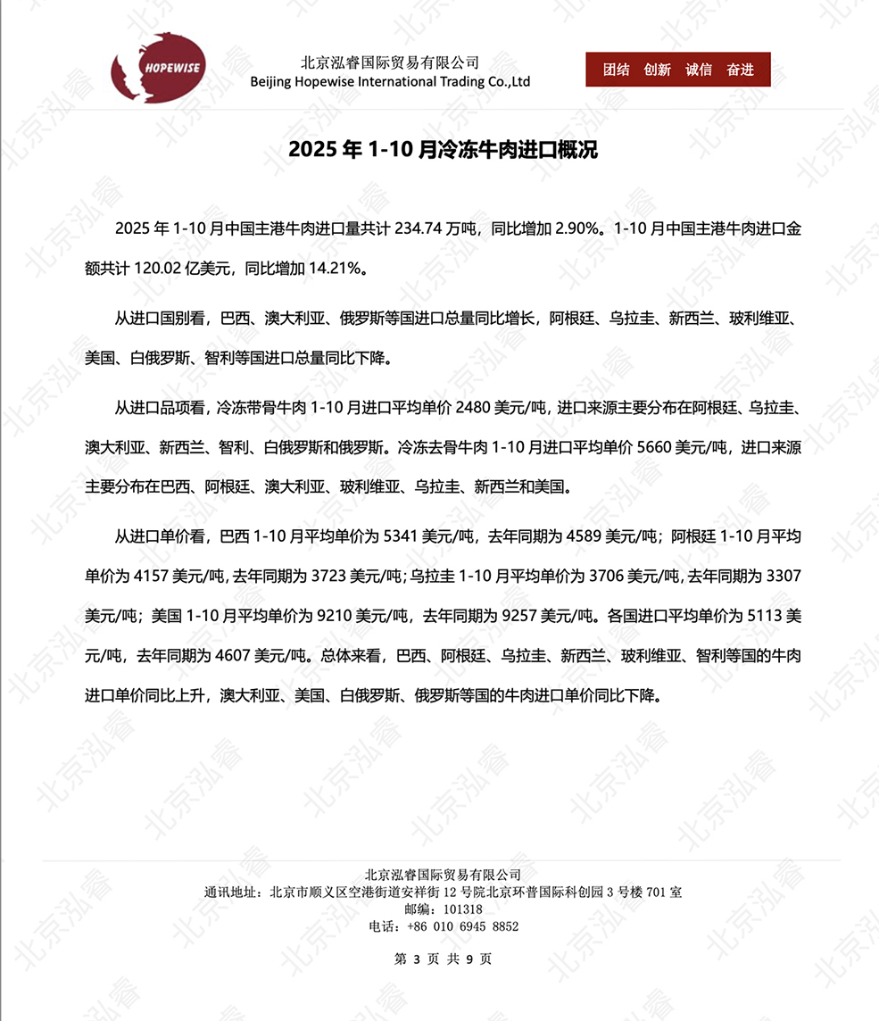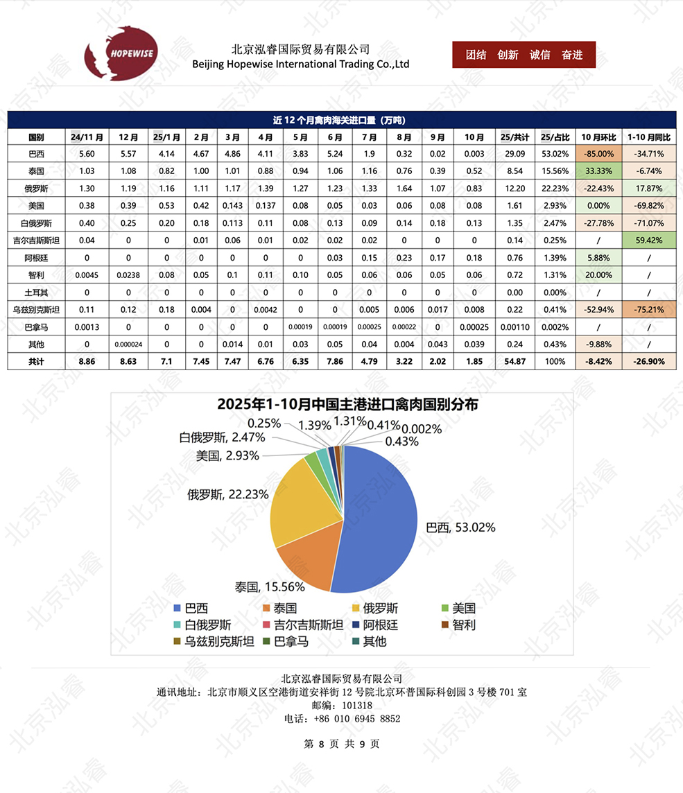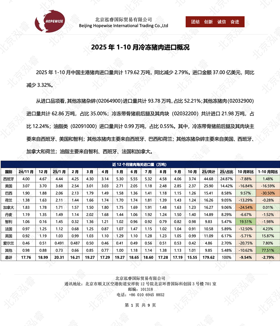 2025年1-10月冷凍豬牛禽肉海關(guān)進(jìn)口數(shù)據(jù)