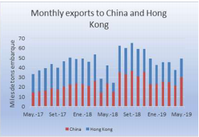 五月對(duì)中國(guó)的直接出口量達(dá)到去年十一月以來最高