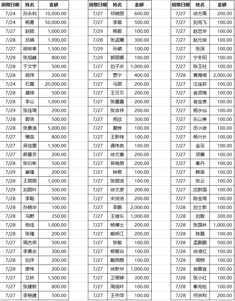 天災(zāi)無情,但壓不過泱泱大國;暴雨肆虐,但敵不過眾志成城。短短兩天時間,公司及員工共募捐720750元,包括:北京泓睿國際貿(mào)易有限公司20萬,天津泓睿食品有限公司20萬,北京大壹統(tǒng)科技有限公司5萬,上海泓瑞食品有限公司5萬,上海金亥食品有限公司5萬,北京帕爾司電子商務(wù)有限公司5萬,員工自行及公司代捐款共計120750元。此款項(xiàng)已于第一時間匯入河南省抗洪救災(zāi)相關(guān)賬戶。
