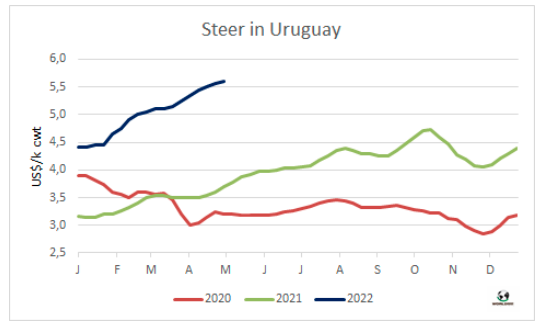 S四月烏拉圭對中國出口均價保持強勁增長