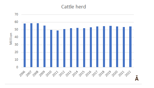 2022年活牛存欄增長(zhǎng)1.5%,但仍未達(dá)到 2016-2019年的平均水平