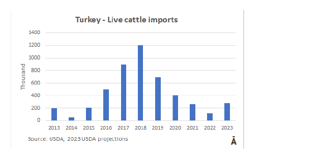美國(guó)農(nóng)業(yè)部預(yù)測(cè)2023年土耳其牛進(jìn)口量將增加一倍以上