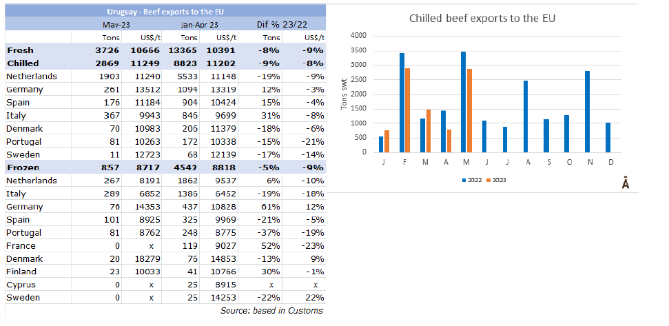 5月烏拉圭對歐盟的鮮牛肉出口量年降17%