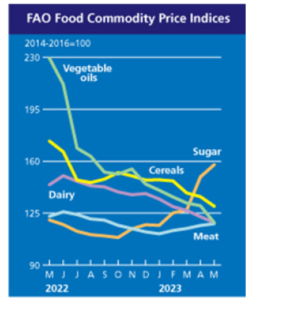 5月份糧農組織肉類價格指數(shù)平均為117.9點,比4月份上升1.1點(1%),是連續(xù)第四個月上升。盡管如此,該指數(shù)仍比去年同月的數(shù)值低5點(4.1%)。由于進口需求持續(xù)高漲,國際禽類價格5月份繼續(xù)上漲,特別是來自亞洲的需求,由于禽流感的廣泛爆發(fā)也引起了人們對短期供應面臨潛在挑戰(zhàn)的擔憂。