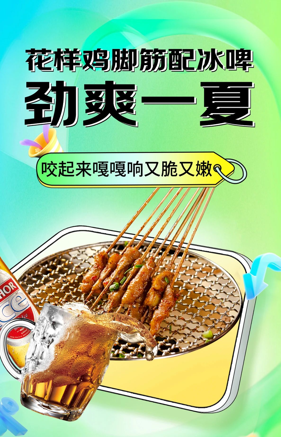在夏日的晚風(fēng)中感受或熱血、或悠然、或放空的時(shí)光。一桌燒烤、一鍋串串,少不了雞腳筋的勁爽加持,配上一杯啤酒或清茶,便是人間好夢(mèng)長(zhǎng)。