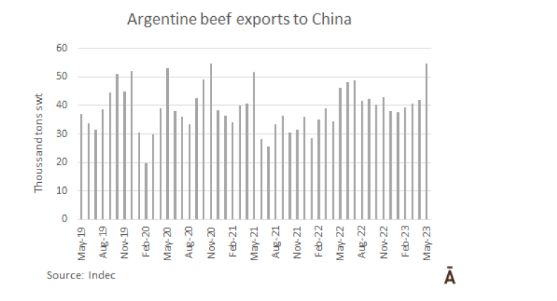 據(jù)報(bào)道,5月份冰鮮和冷凍牛肉的出口量達(dá)到近65,100噸,比上個(gè)月多出22.4%,比2022年5月多出13.1%,是自2020年11月以來(lái)的42個(gè)月最大月出口量。