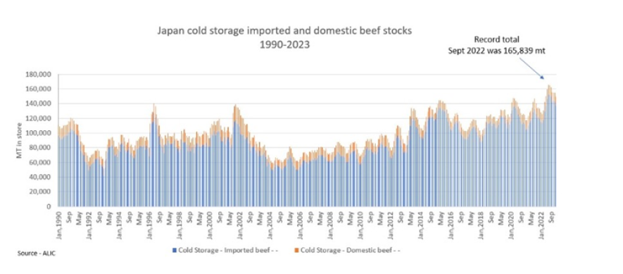 日本的最新數(shù)據(jù)顯示,隨著亞洲大量庫(kù)存的挑戰(zhàn)加劇,日本牛肉庫(kù)存走高。