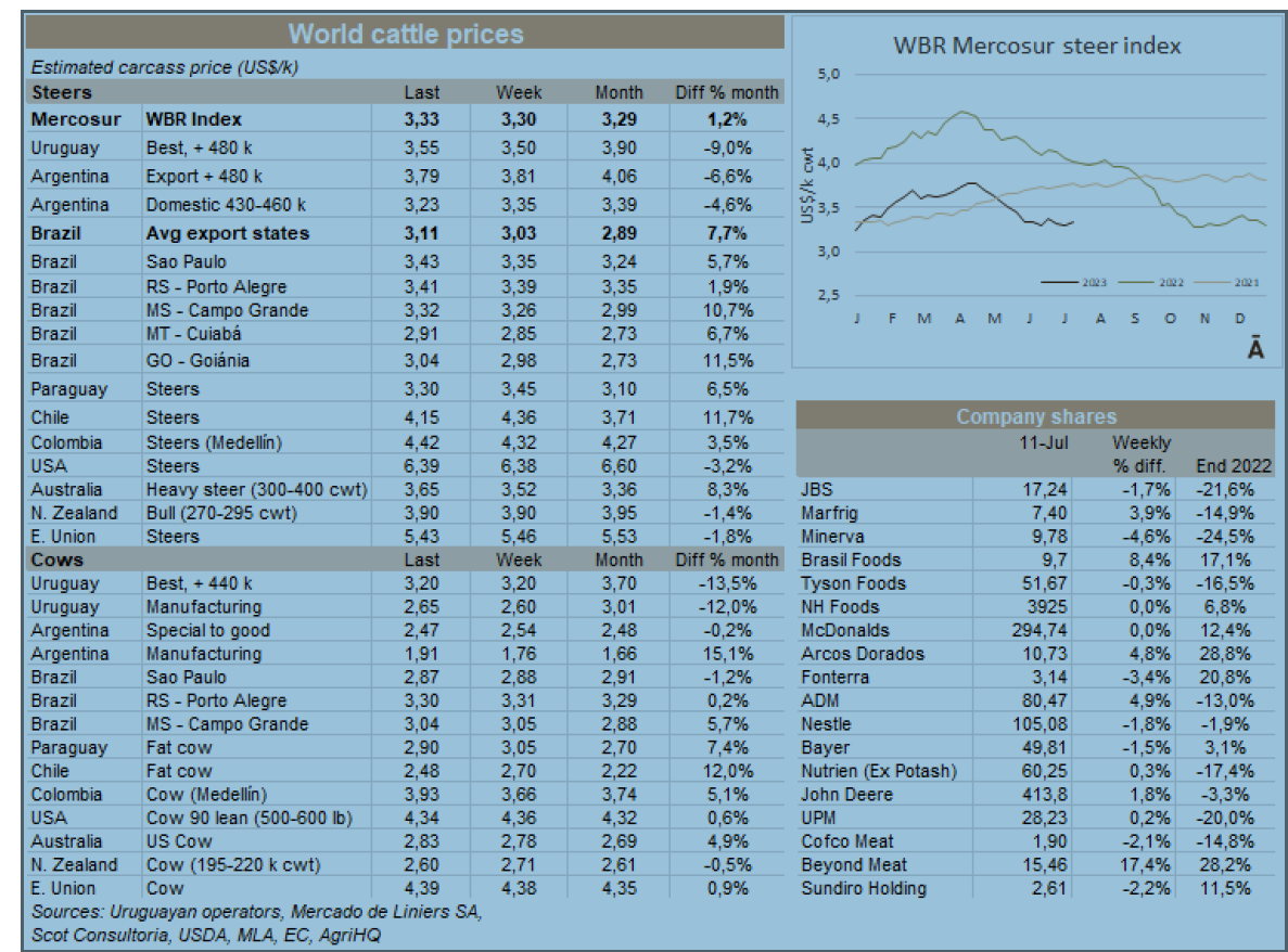 Brazil raised the WBR Mercosur Steer Index