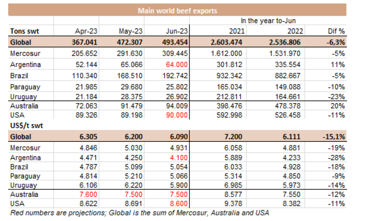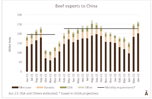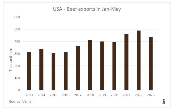 6月份對中國的牛肉出口數(shù)據(jù)顯示,出口量接近去年下半年創(chuàng)下的月度記錄,考慮到近幾個(gè)月需求的顯著疲軟,這一點(diǎn)令人震驚。