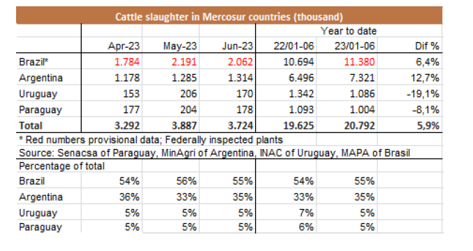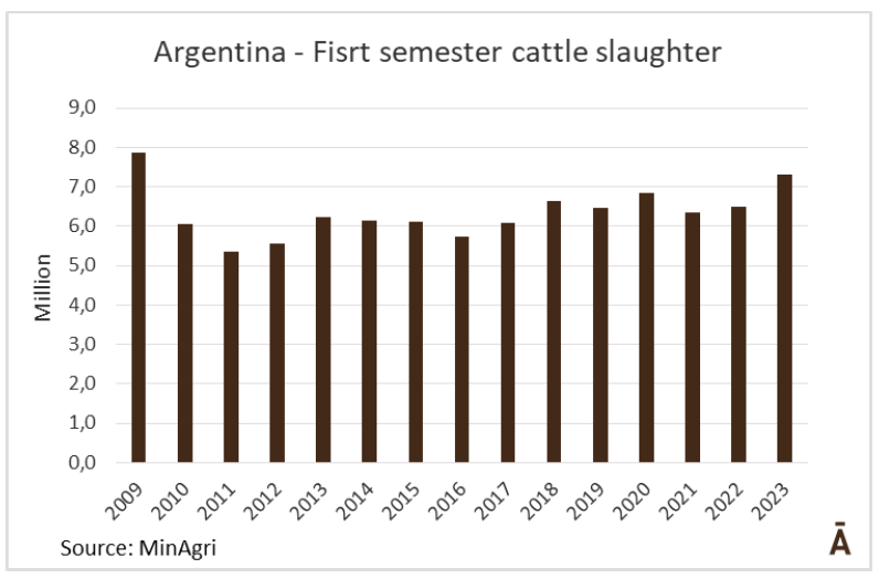 6月份和這半年的阿根廷牛肉屠宰量是自2009年以來產(chǎn)量最高的