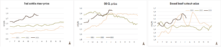 在國際市場穩(wěn)定的支持下,極低的供應(yīng)和比較大的購買興趣使市場更加穩(wěn)定。此外,Marfrig-Colonia 恢復(fù)了工作,因此只剩下Marfrig-Inaler and Minerva-Canelones兩家公司沒有交易。