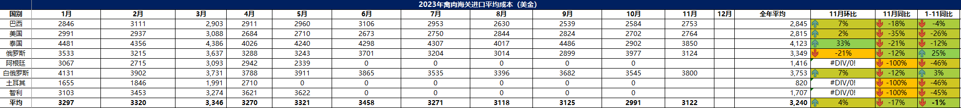 2023 年 11月冷凍禽肉進(jìn)口概況