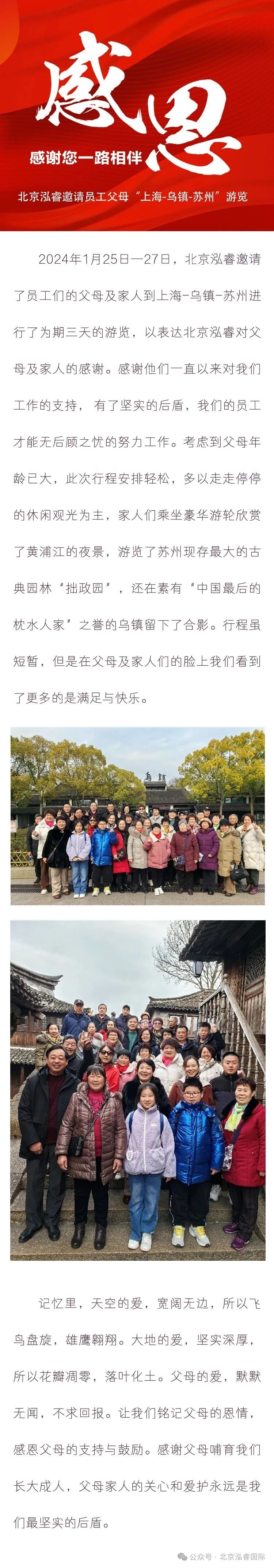 北京泓睿邀請員工父母上海-烏鎮(zhèn)-蘇州游覽
