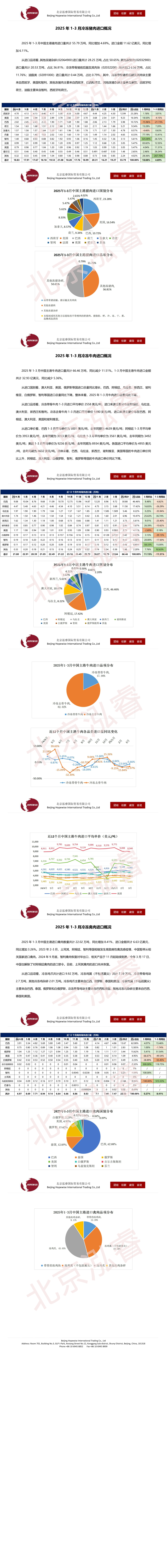 2025年1-3月冷凍豬牛禽肉海關(guān)進(jìn)口數(shù)據(jù)